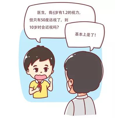 如果一个小朋友才6岁,就只剩下50度远视了,那么到了10岁会怎么样呢?早早耗尽远视的“本钱”,继续透支就会变成近视眼。