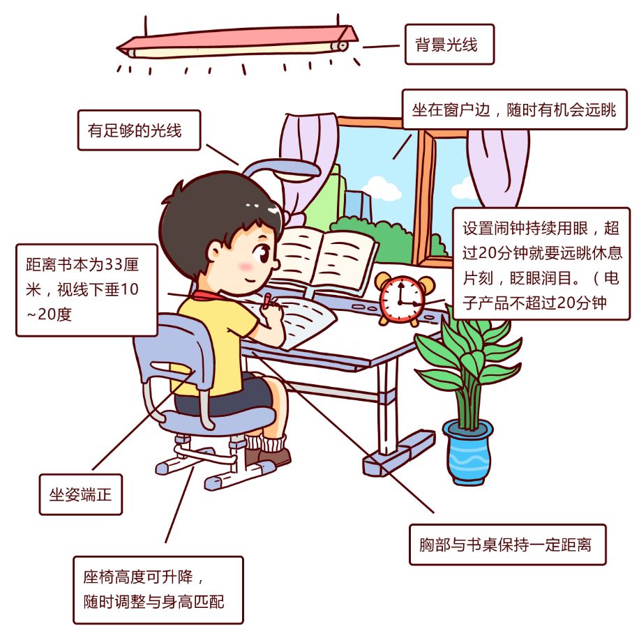1.晚上读书写字,要保持整个房间有足够的亮度。